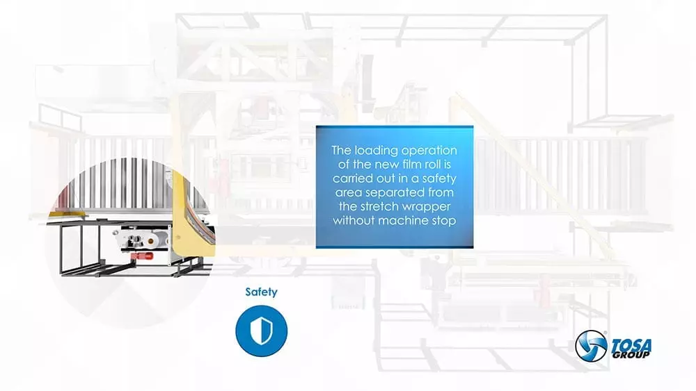Lösningen med automatiskt rullbyte är snabbast i världen, med automatiskt byte av sträckfilmsrullen utan operatörens ingripande på 35 sekunder, säkrat av ett internationellt patent. Lätt att använda, pålitligt och garanterar också maximal säkerhet och produktion.